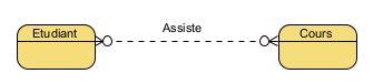 Un étudiant est assis sur une chaise. Il ne peut y avoir 2 étudiants sur 1 chaise, et un étudiant ne peut être assis sur 2 chaises à la fois. Mais un étudiant peut ne pas être sur une chaise, et une chaise peut n'avoir personne d'assis sur elle. C'est donc une relation « 0 ou 1 » aux deux extrémités de la relation, elle sera donc 1:1.