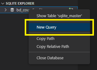 Effectuez un clic droit sur la base de données et sélectionnez l'option New Query pour avoir une fenêtre de requête.
