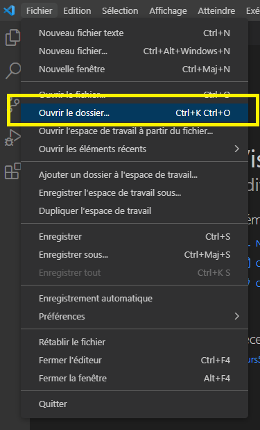 Sélectionnez le menu Fichier -> Ouvrir le dossier...